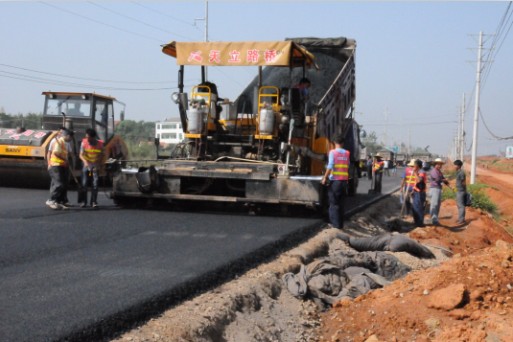 國(guó)慶節(jié)期間,天立路橋公司咸潘一級(jí)公路項(xiàng)目進(jìn)入瀝青路面施工,現(xiàn)場(chǎng)到處鏖戰(zhàn)正酣,一輛輛瀝青混凝土運(yùn)輸車、攤鋪機(jī)、壓路機(jī)往來穿梭,處處可見施工作業(yè)人員忙碌的身影,整個(gè)工地一幅熱火朝天的施工景象。