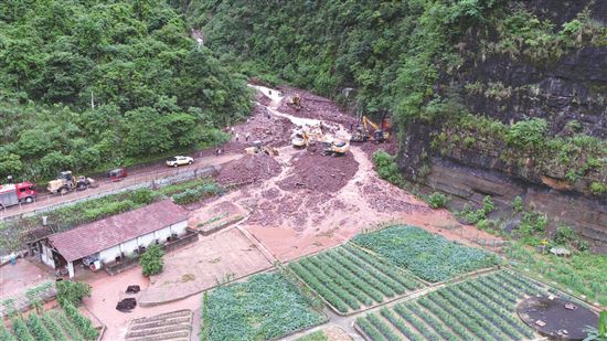 圖為湖南318省道遷清公路段搶通現(xiàn)場。彭清君 攝
